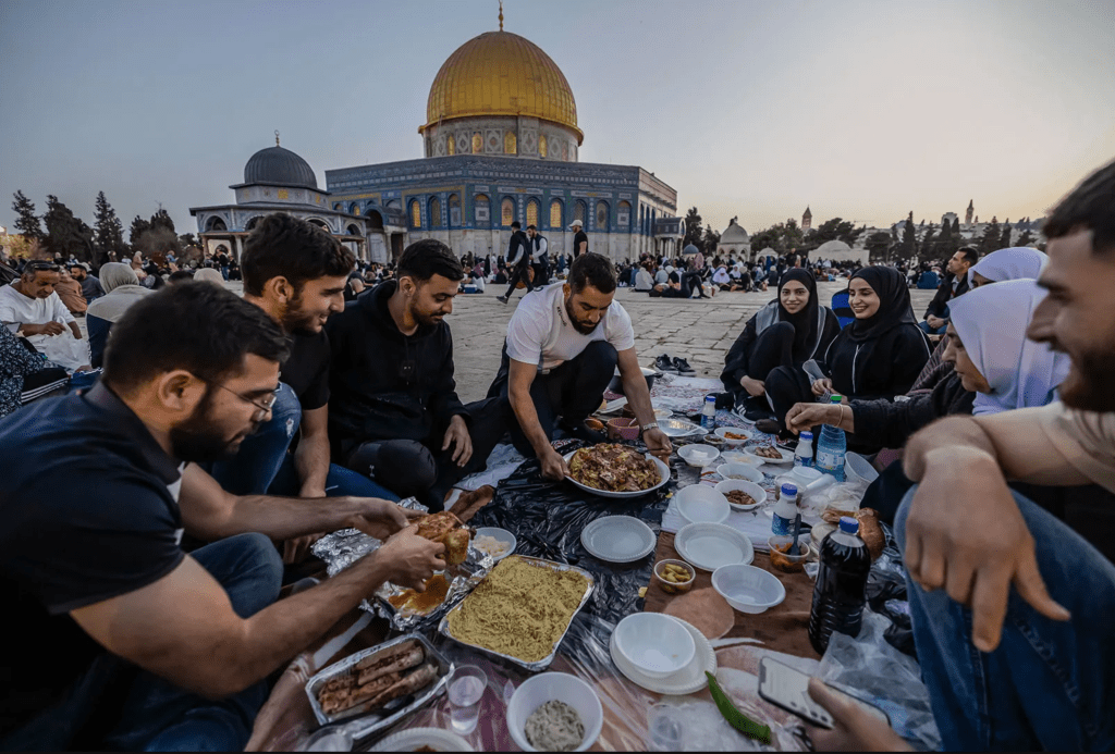 De gezamenlijke iftar maaltijden na zonsondergang onderstrepen dit collectieve karakter.De gemeenschap beweegt samen door de dag heen.
